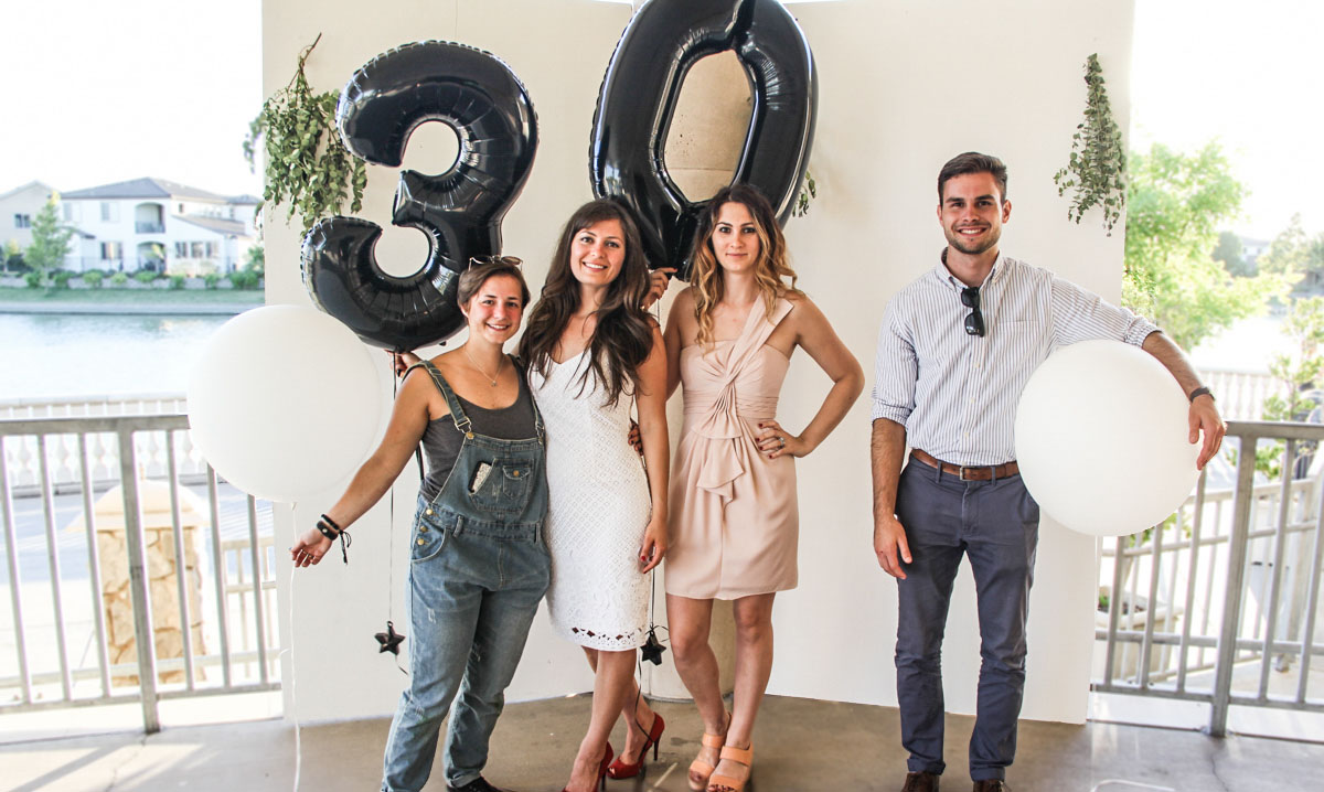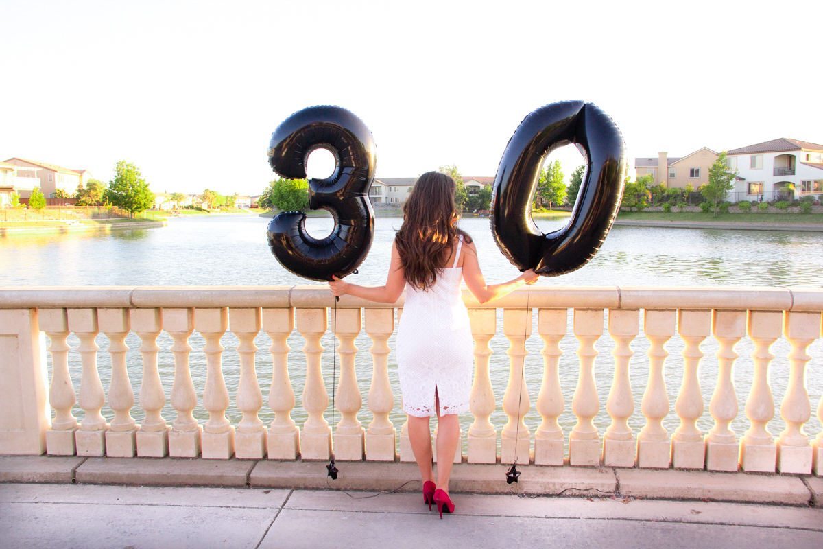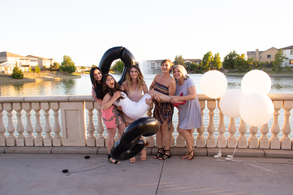 A little preview of how this classic, flirty birthday celebration has turned out at Boathouse, Bridgeway Lakes in West Sacramento for my sister. Because it is in the middle of July and we usually end up having a pool party, this big 30 deserved a little upscale. With the beautiful bright venue and a courtyard that opened up  by the lake with a water fountain, it was a beautiful spot for outdoor pictures.