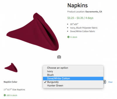 Variable Product Variable products are a product type that lets you offer a set of variations on a product, with control over prices, stock, image and more for each variation. They can be used for a product like napkins, table cloths, tables, etc. where you can offer different sizes and different colors. Adding a variable product Step…