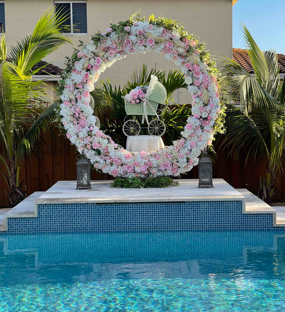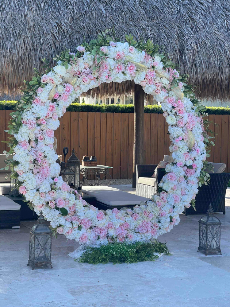 Make your wedding extraordinary with our Beautiful 8ft high handmade floral bridal arch ring. Delivery, set up and pick included in total price for Miami metro area only. Extra charge for Broward delivery.