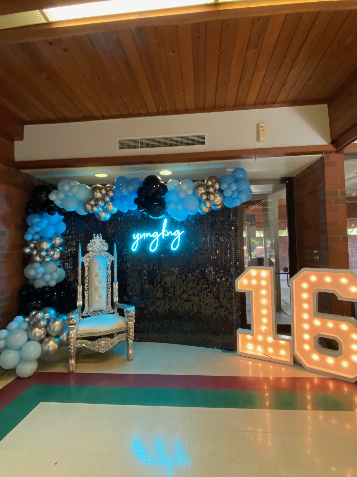 We have this same Sequin Wall available in Pink as well just ask about our inventory.