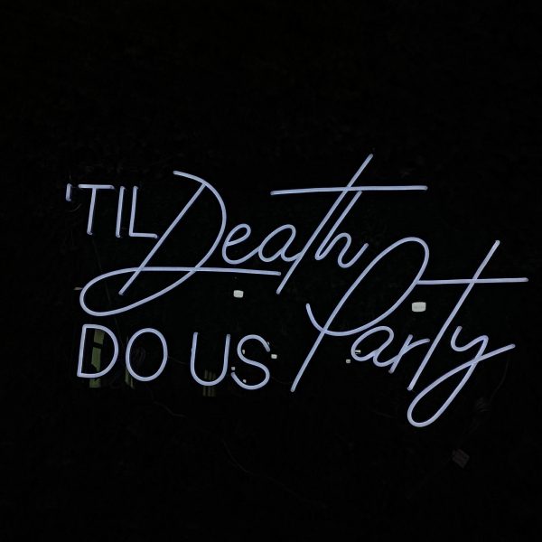 – clear power cords come out of the both bottom right corner and bottom left of the sign. both cords connect to main power adapter that plugs into the wall.
