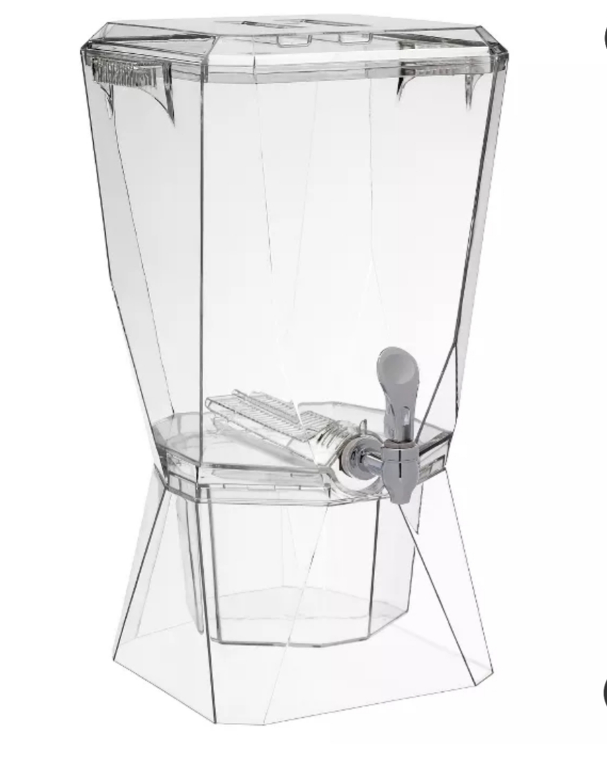 Have 1, 3.5 gallon beverage dispenser made of heavy duty acrylic. Huge drink capability.