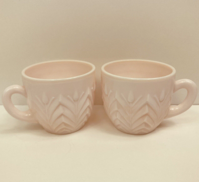 Jeanette Pink Milk Glass Feather Punch Bowl Cups. $7.00