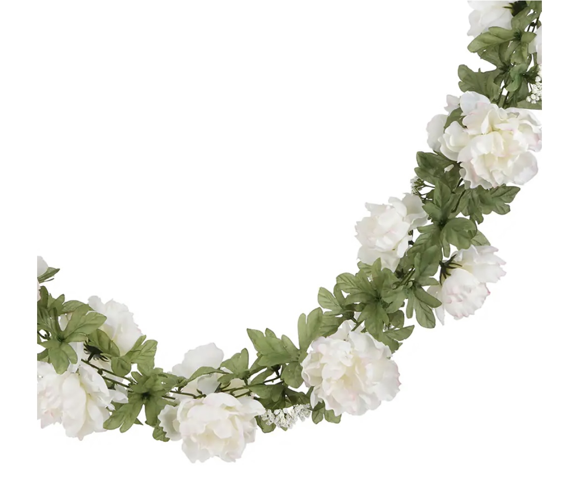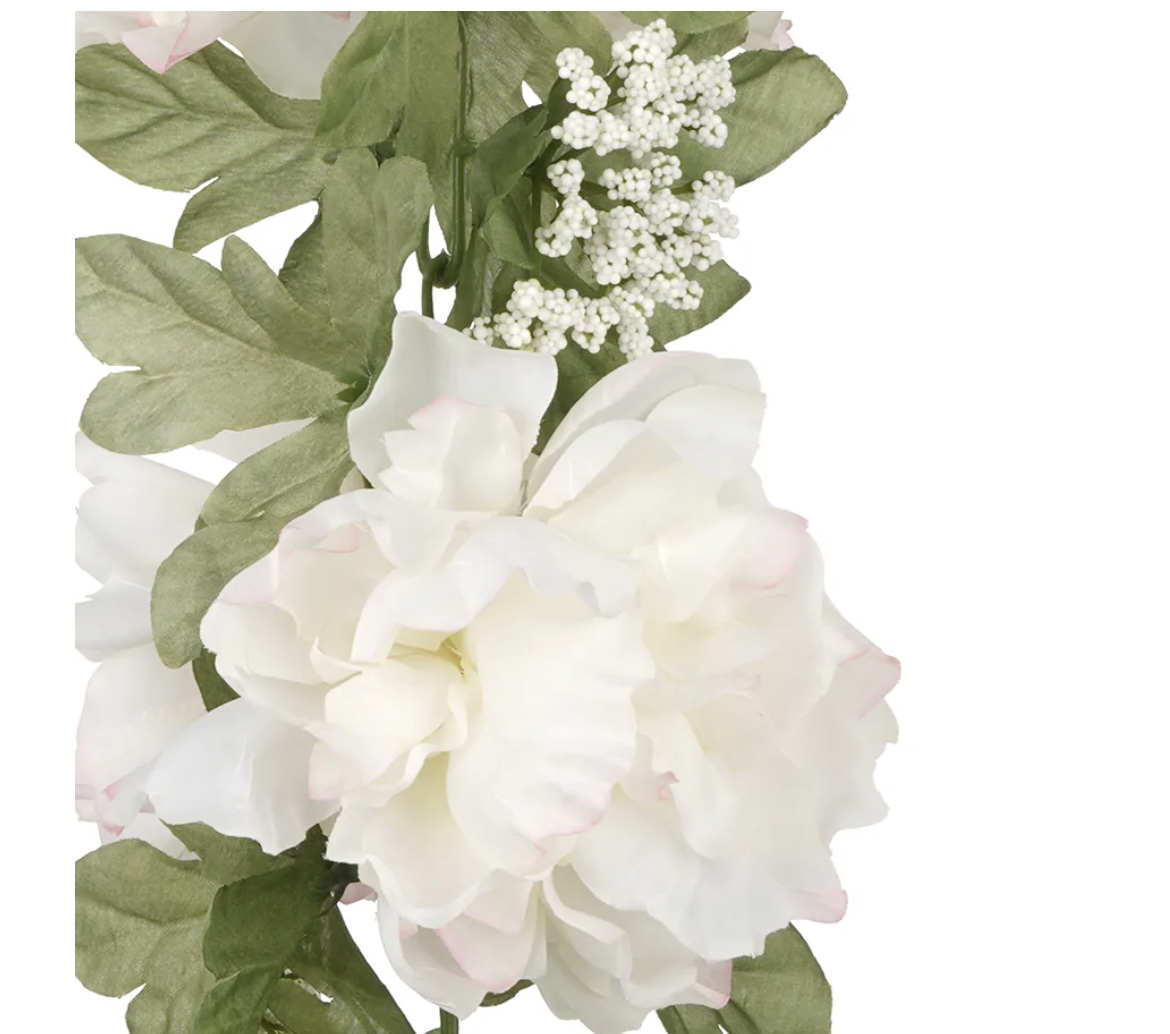 This white peony garland is perfect for displaying on your mantel, wall, window or table. Guaranteed to lend your event a bright spring vibe.