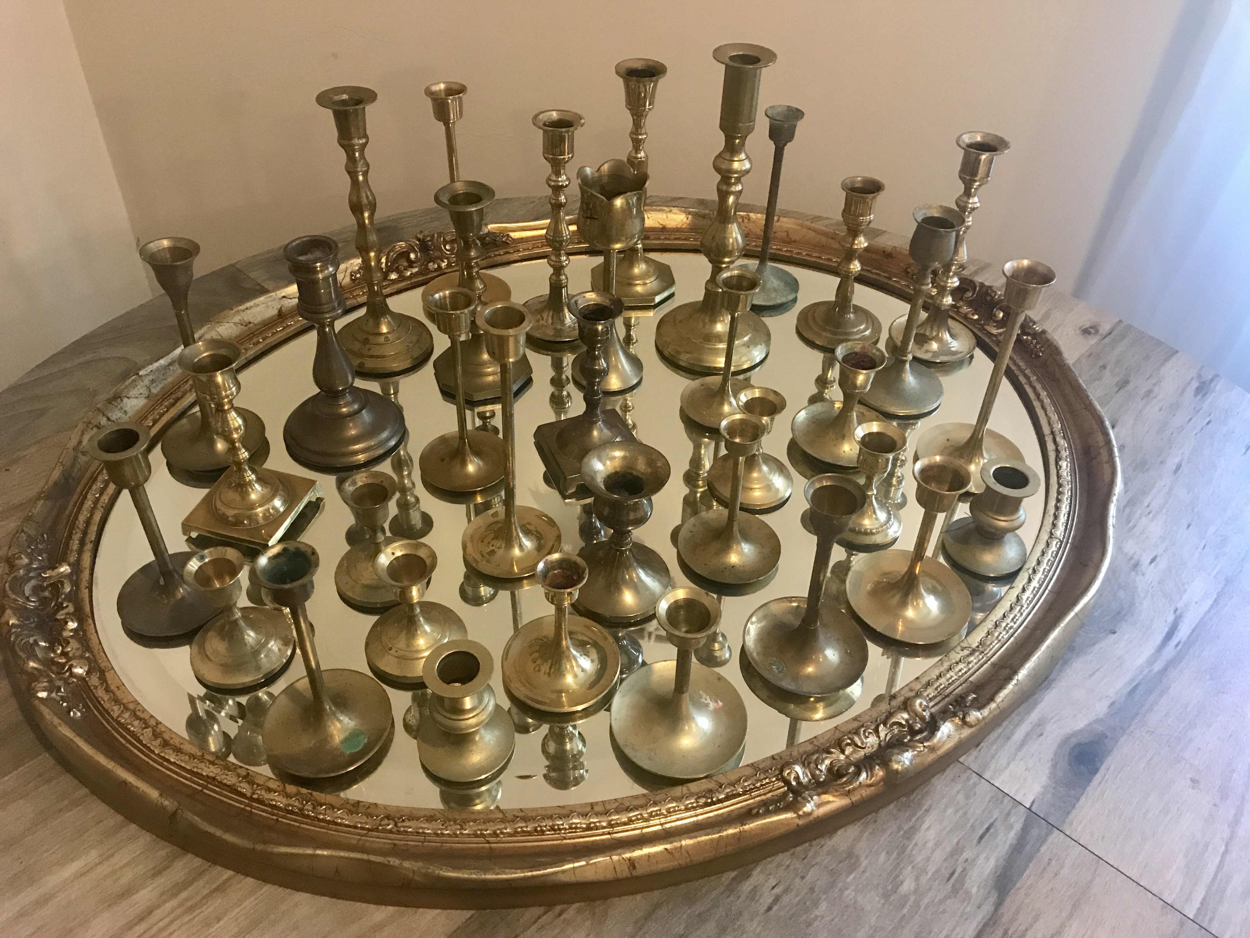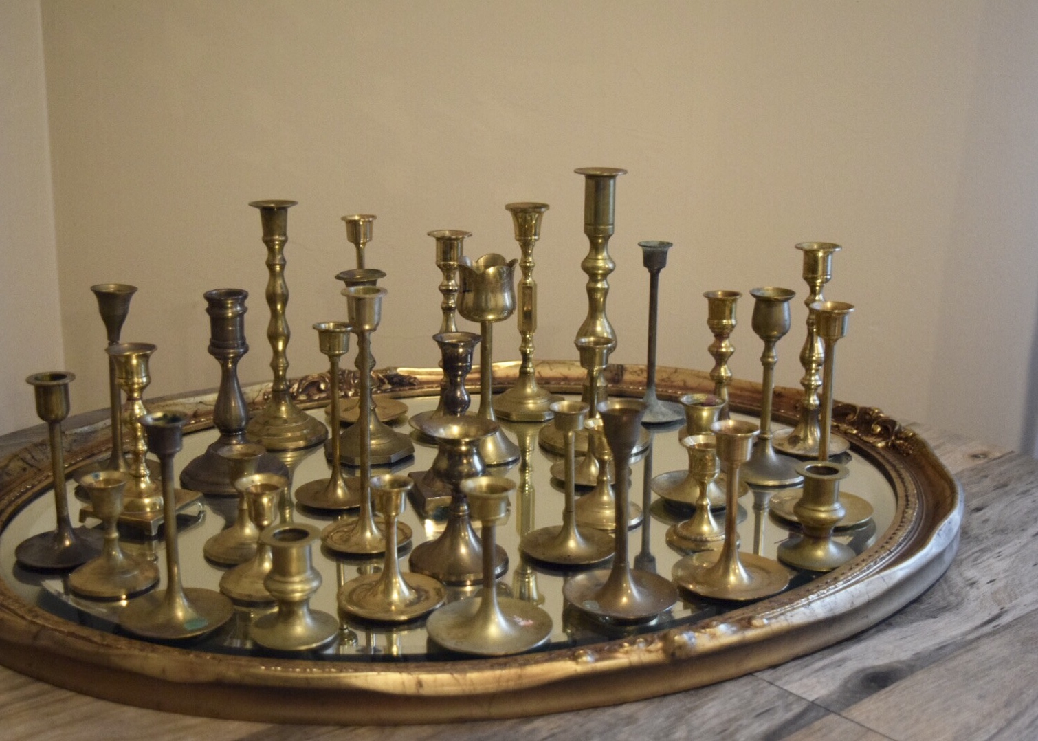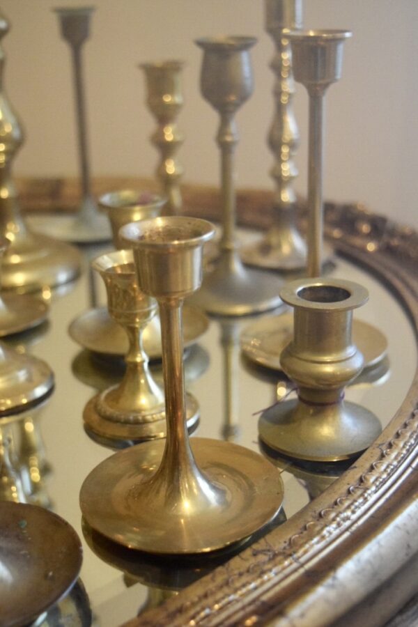 Vintage antique brass candle holders that serve as perfect additions to tablescapes for your special event.