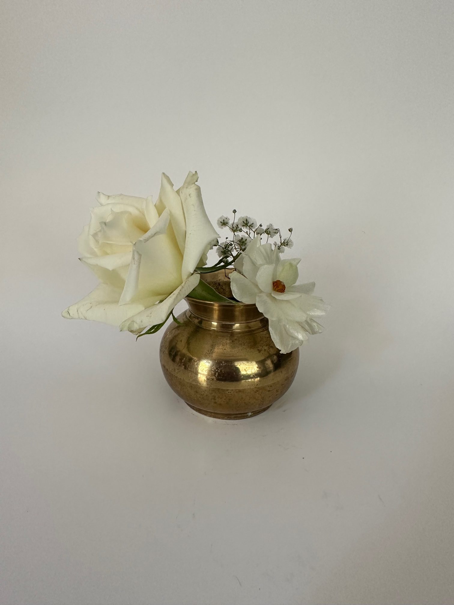 Adorable antique brass vase. Will add the perfect gold touch for your wedding, showers and special events!