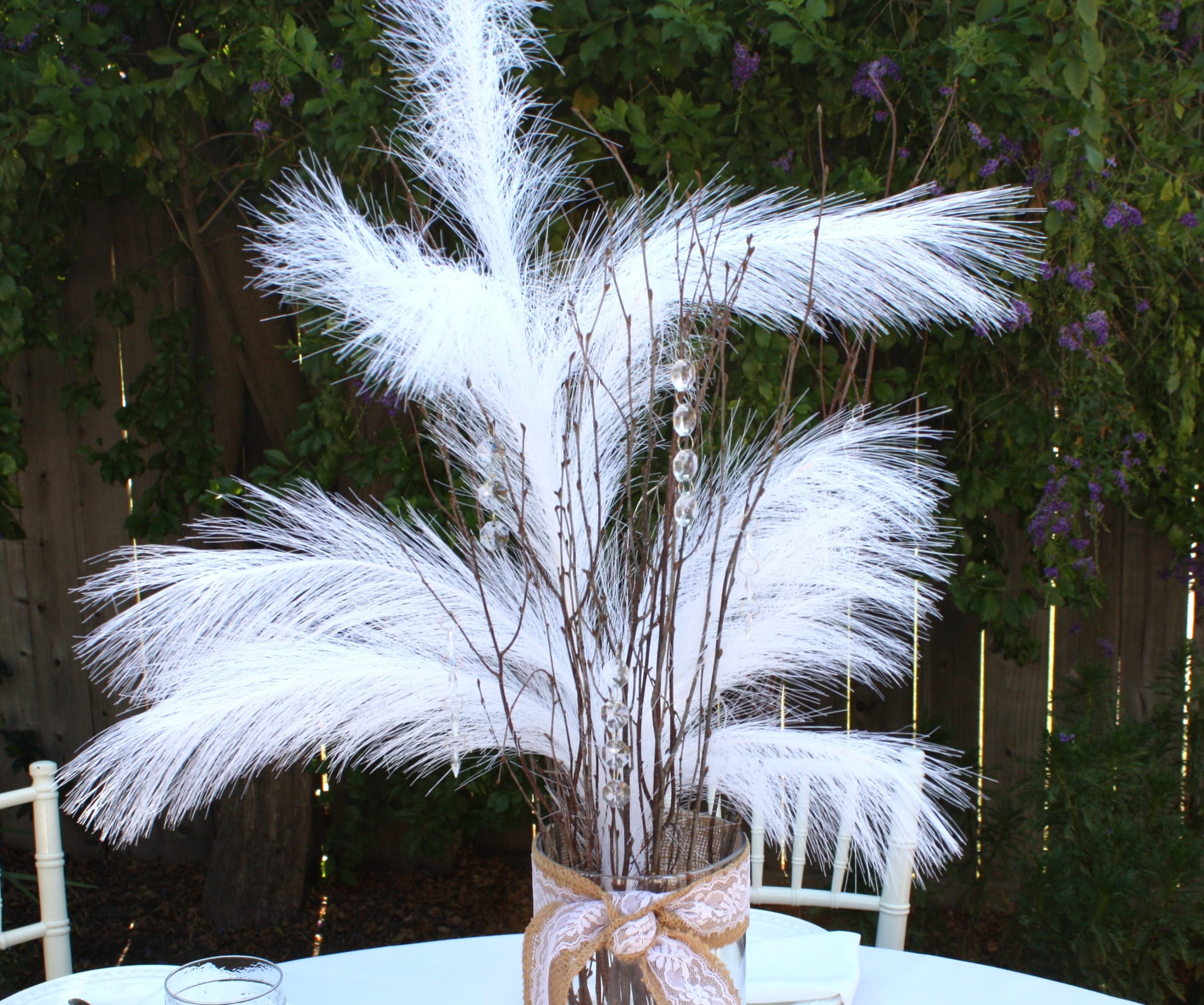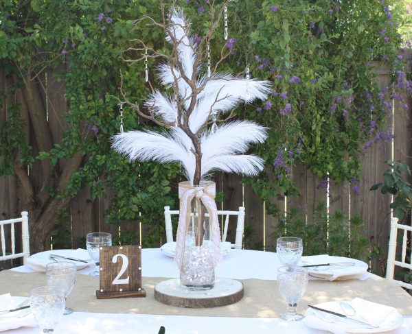 Nature and elegance combine in these stunning centerpieces. Featuring 2 different centerpiece styles with brown and white contrast, these tall centerpieces (26.5 inches) will add gorgeous visual appeal to your tables! Sparkly crystal dangles and diamond crystal gems add that perfect touch of elegance.