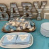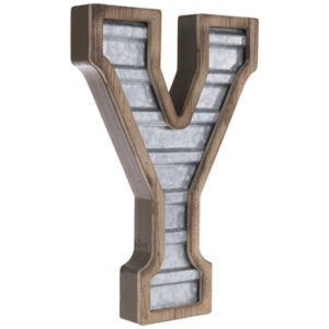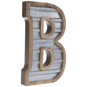 These are four (4) vintage-inspired monogram letters that spell out B A B Y! The galvanized metal letters can be used as stand-alone, table decor OR as wall decor to be hung. The letters feature a galvanized and corrugated metal center and a wood border and backing. The price is $35 for the rental of all four letters.