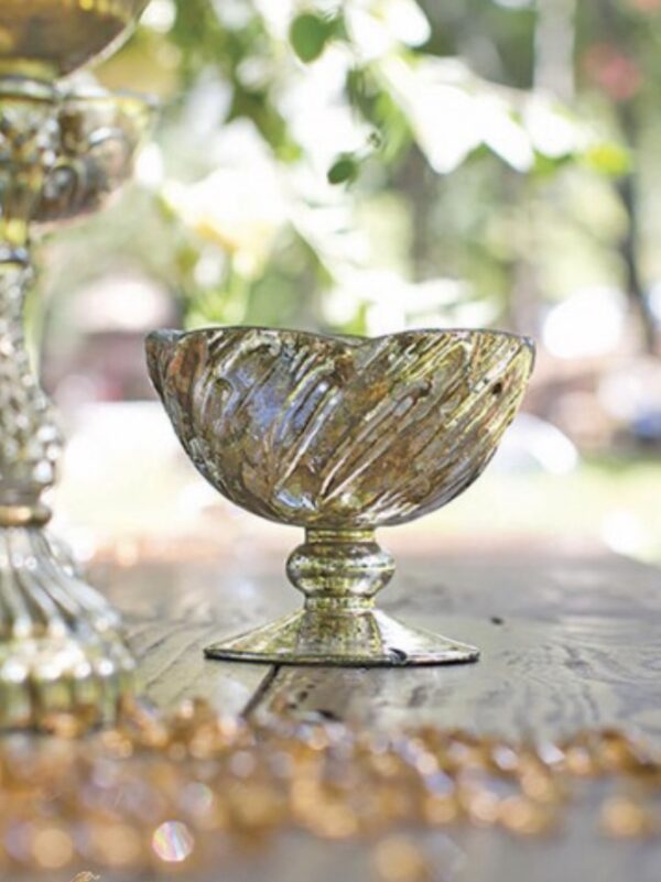 - This mixed metallic bowl makes an eye-catching centerpiece accent when filled with flowers.