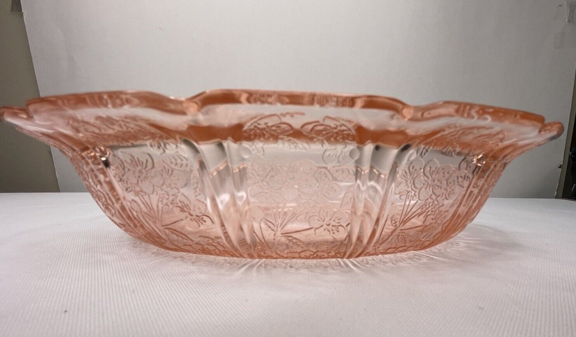 Jeannette Cherry Blossom Oval Serving Bowl Peach/Pink 9″