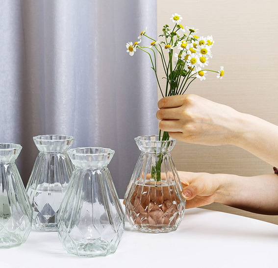 Diamond-Faceted Clear Glass Flower Vase 5.00ea.