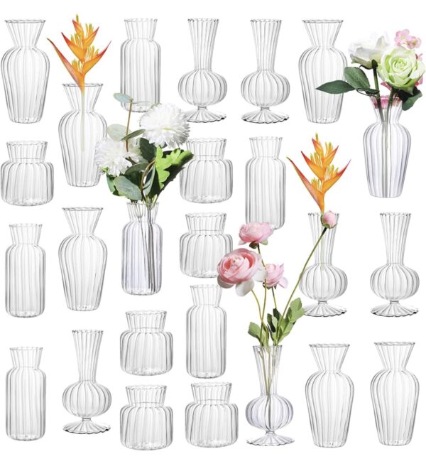 - Beautiful assorted ribbed bud vases now in stock.