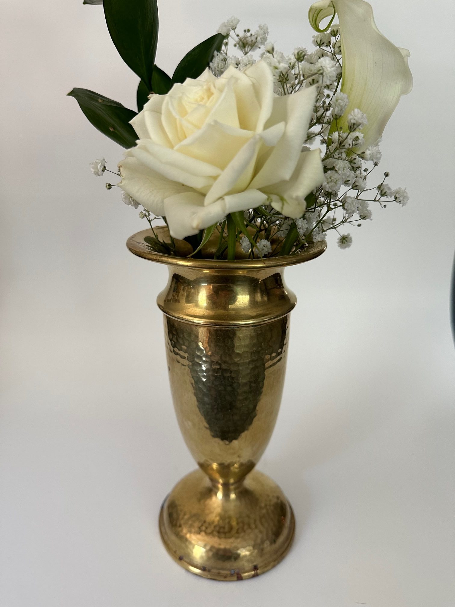 Beautiful antique brass vase. Will add the perfect gold touch for your wedding, showers and special events!
