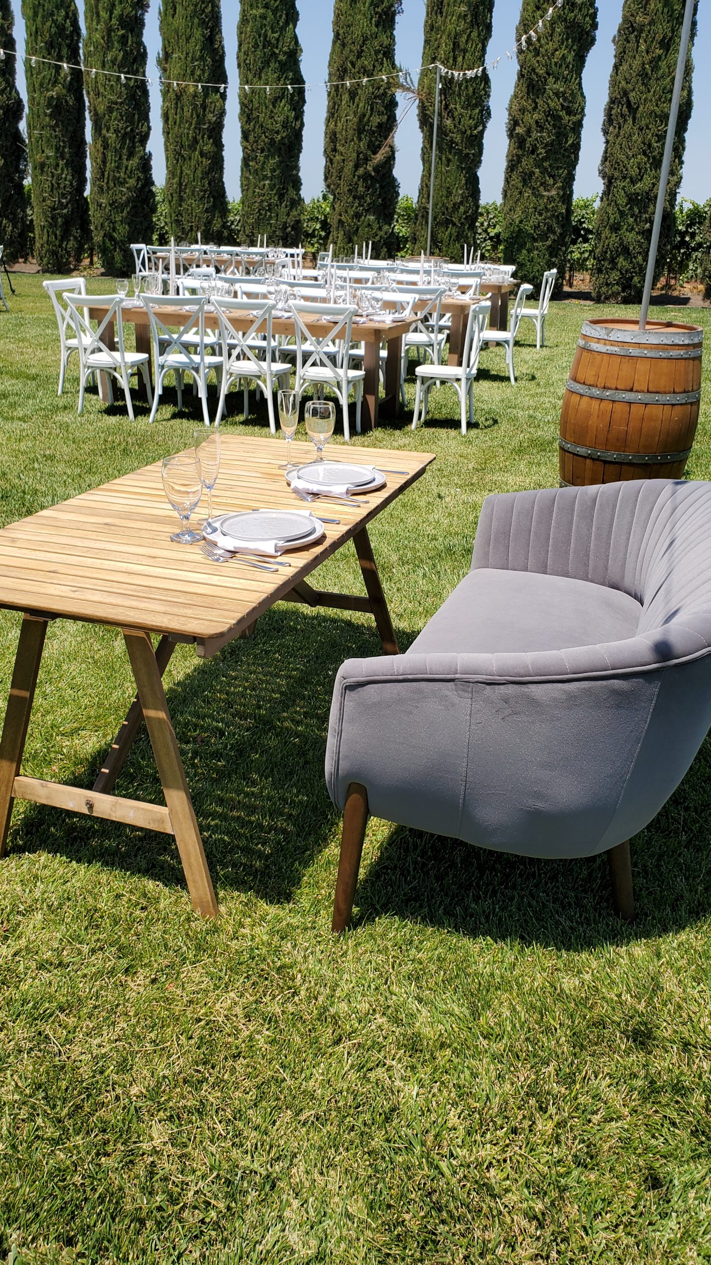 - Light grey loveseat perfect for backdrops or sweetheart tables