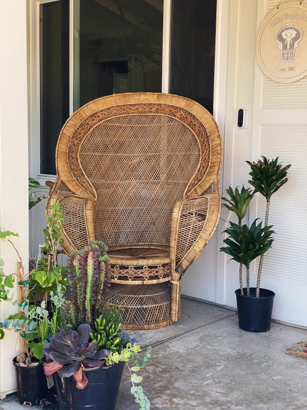 White Elephant Co. Event Rentals – “Rayden” White Peacock Chair rental. A compact version of our Wide Back peacock chair. Wide arms and double walled, making it very sturdy. Great for adults and for children/teens. A gorgeous addition to any event. Contact us for more available vintage furniture and decor!