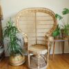 The “Tiffany” is our gorgeous traditional Emmanuelle-style peacock chair with black ornate woven pattern on the rim. This gorgeous peacock chair can be used in a variety of settings — from boho-inspired weddings to baby showers and photoshoots. Rent your classic peacock chair for your party or wedding today. Check out our inventory for more peacock chairs and contact us for more available vintage furniture and decor!