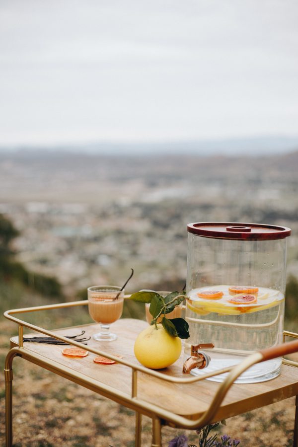 This beverage dispenser is perfect for any event! The copper details add a rustic design.