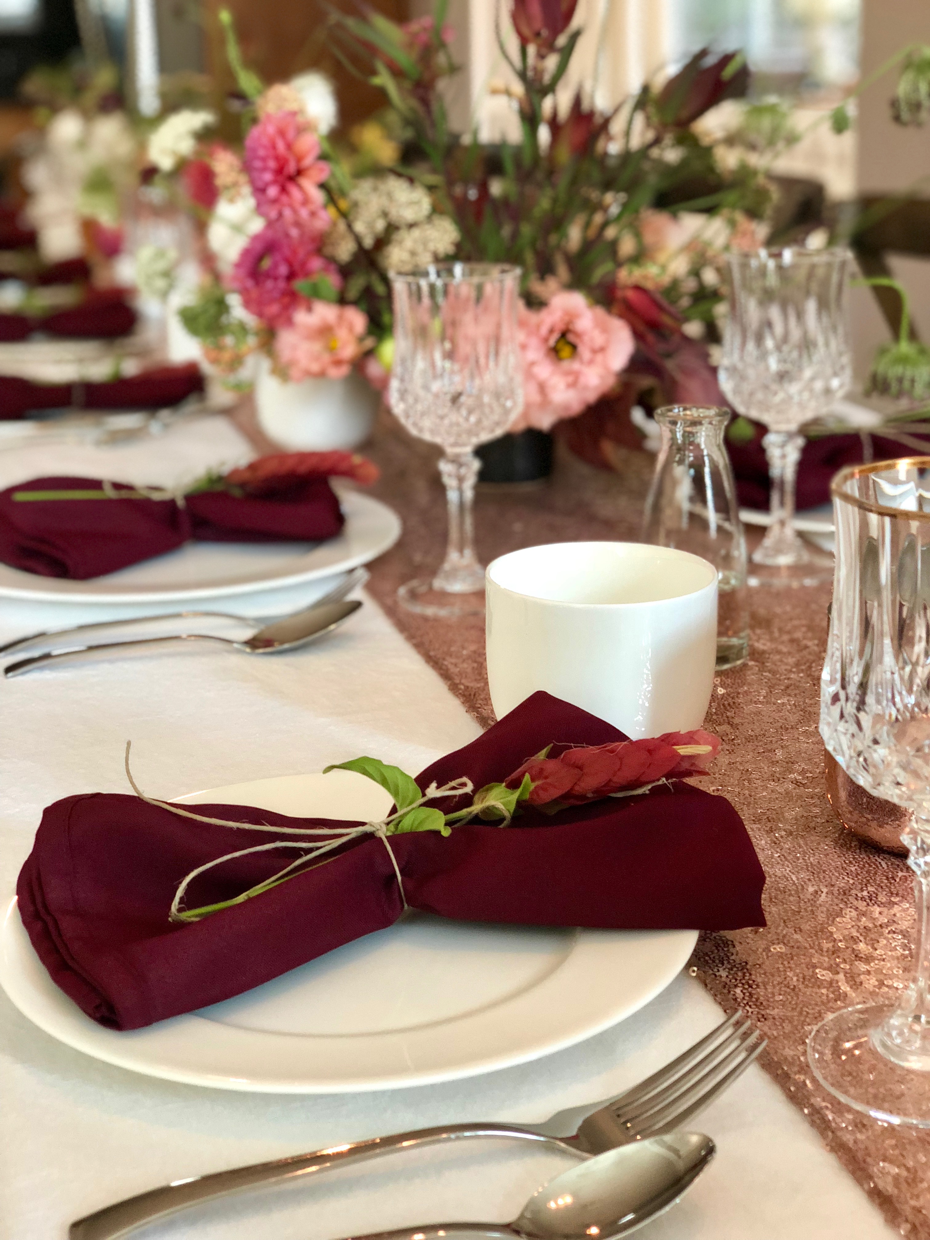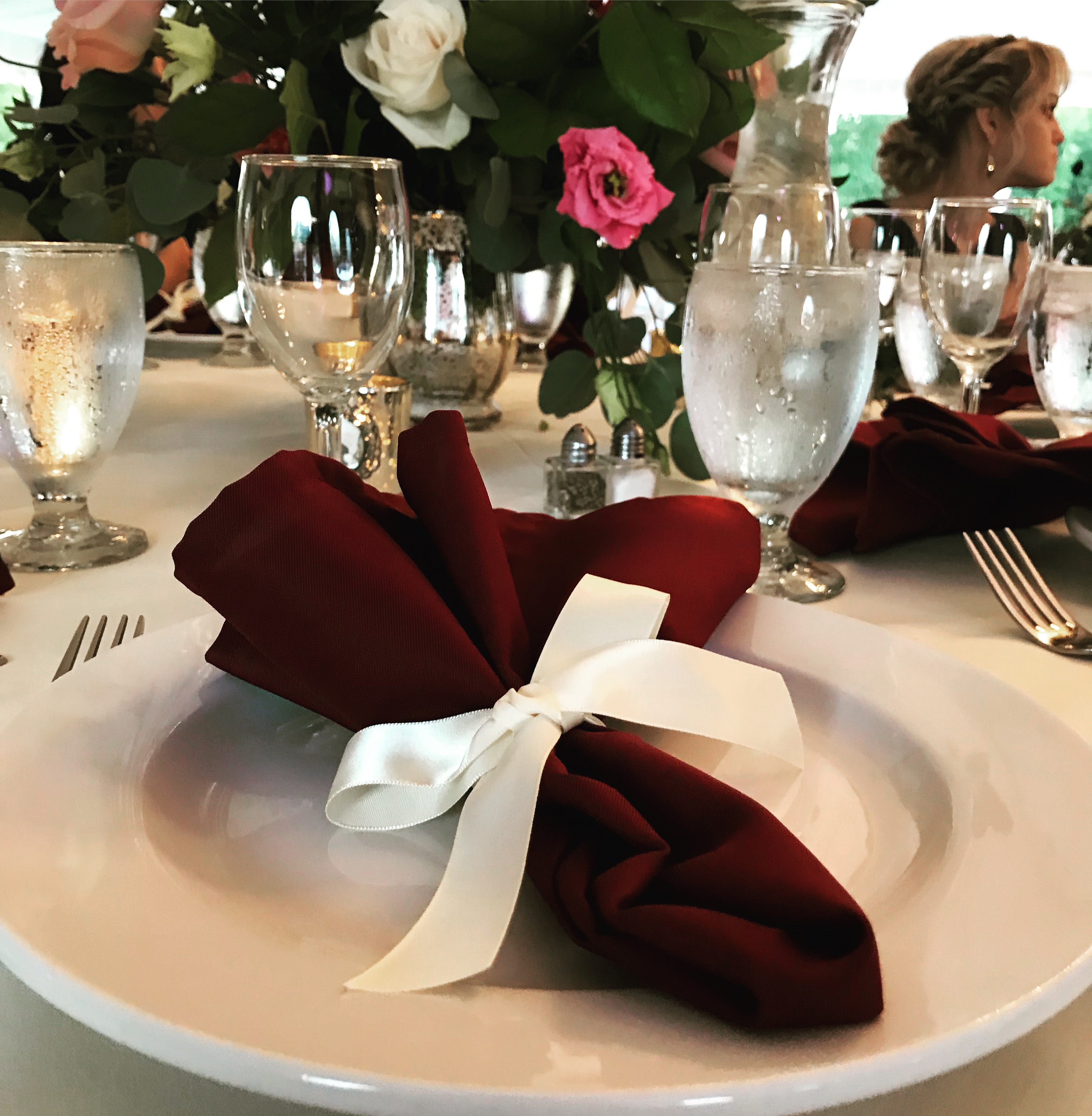 • Our beautiful burgundy napkins are a total hit