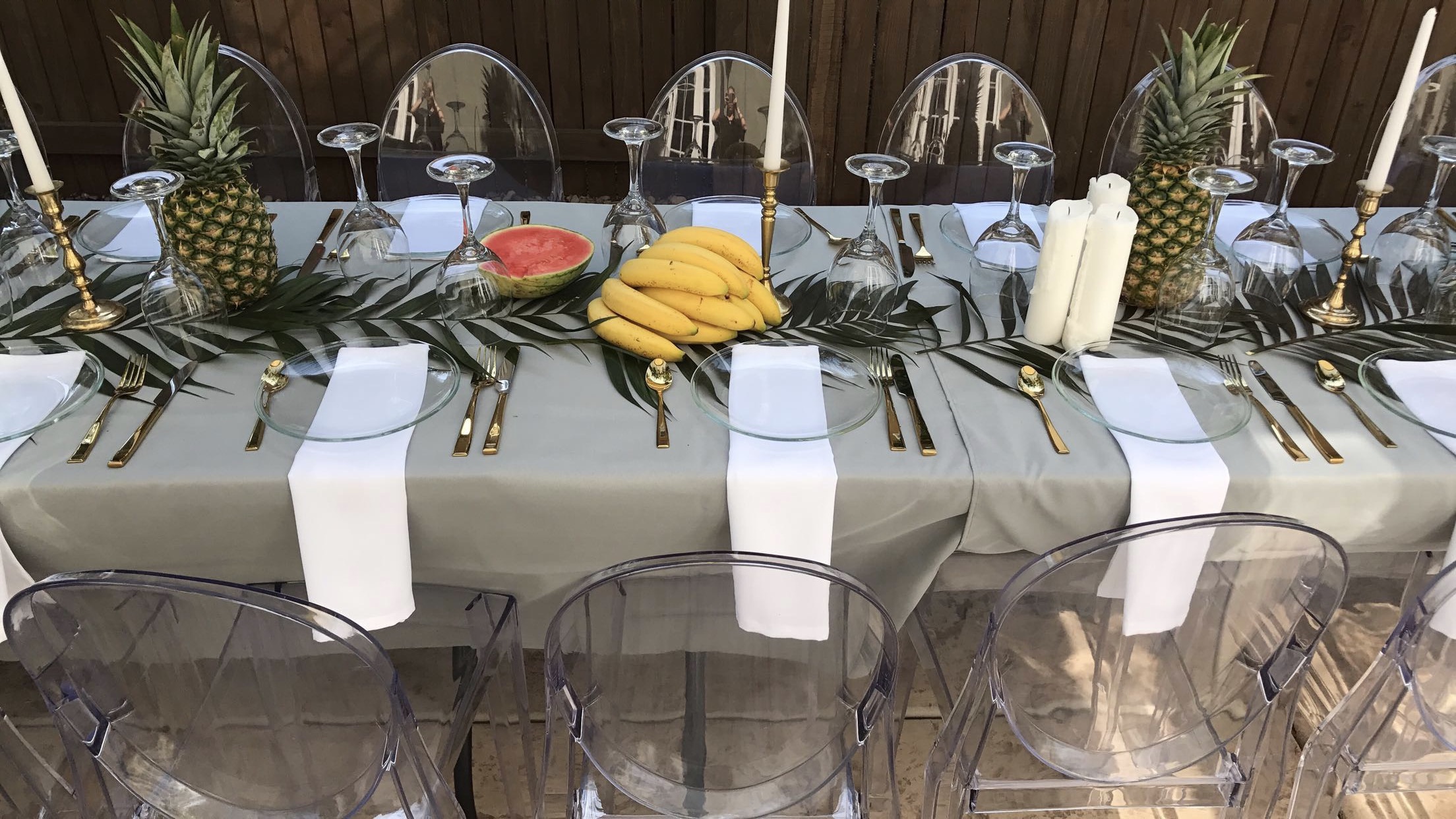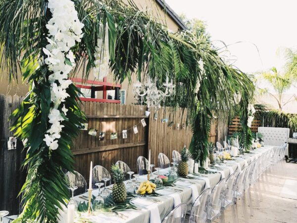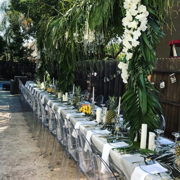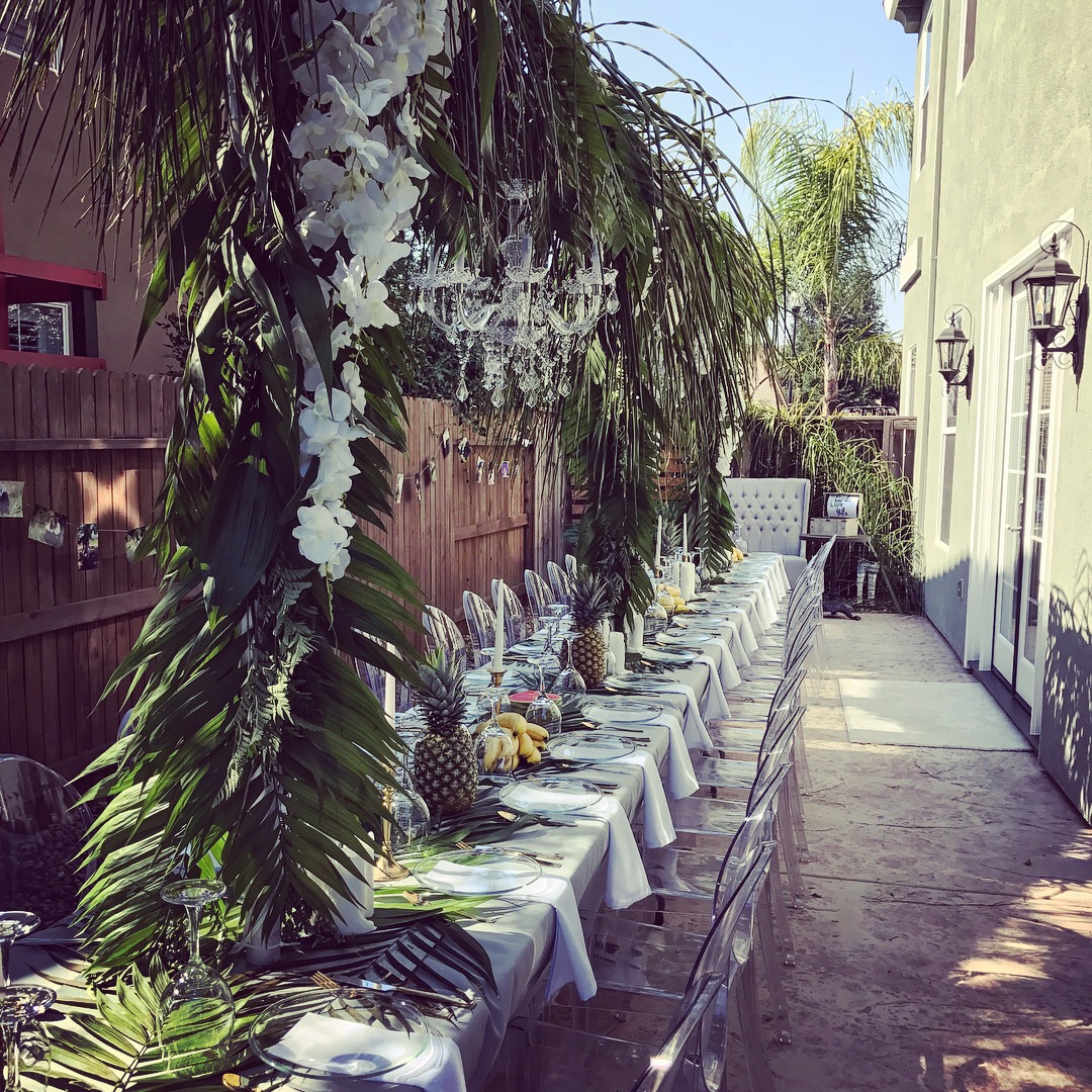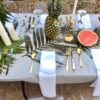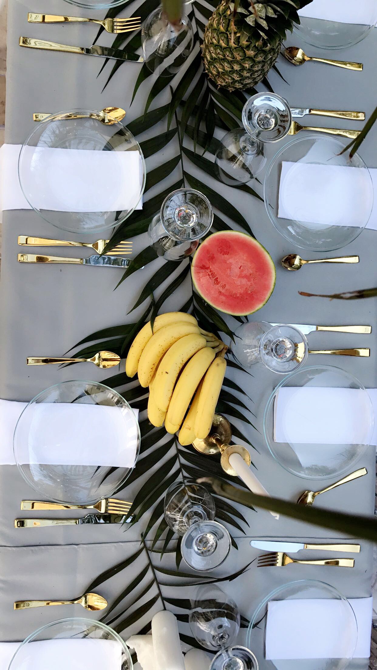 Clear round glass plates would be awesome for any event if your looking for something different than what everyone has at the moment. Pictures are from a Tropical themed bridal shower that I decorated, I tried a more edgy/classy look with some clear glass items.
