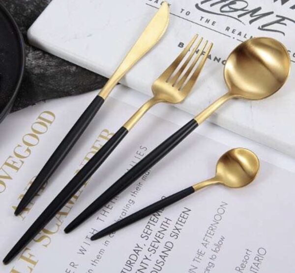 - Set includes 4 pieces (Dinner Knife, Dinner Spoon, Dinner Fork, Dessert Spoon)