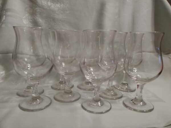 These are stemmed huricane glasses. 2 heights of glasses as shown. Mix heights and size of glasses for a cohesive look among your guests with individual style at each place setting.