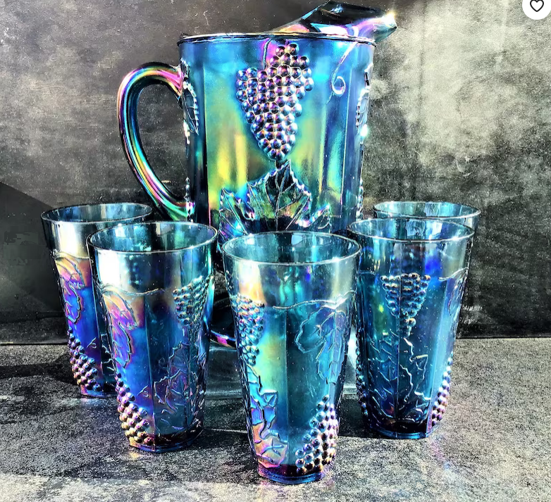 - Harvest Grape Iridescent Glass Blue Cooler Tumbler $10.00 ea.