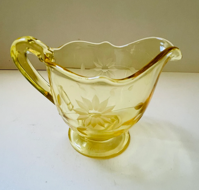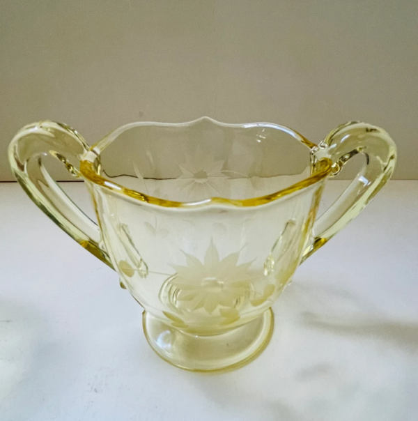 - Yellow Jubilee Glass Creamer and Sugar Bowl Set $30.00 ea.