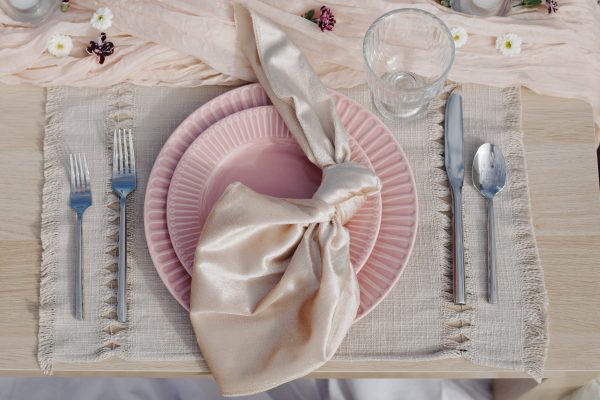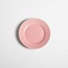 This pink plate can add color and detail to any table setting.
