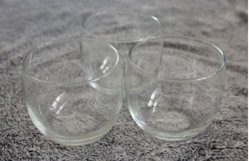 • Small, clear glass approx. 3 inches in diameter, 2 inches in dept.
