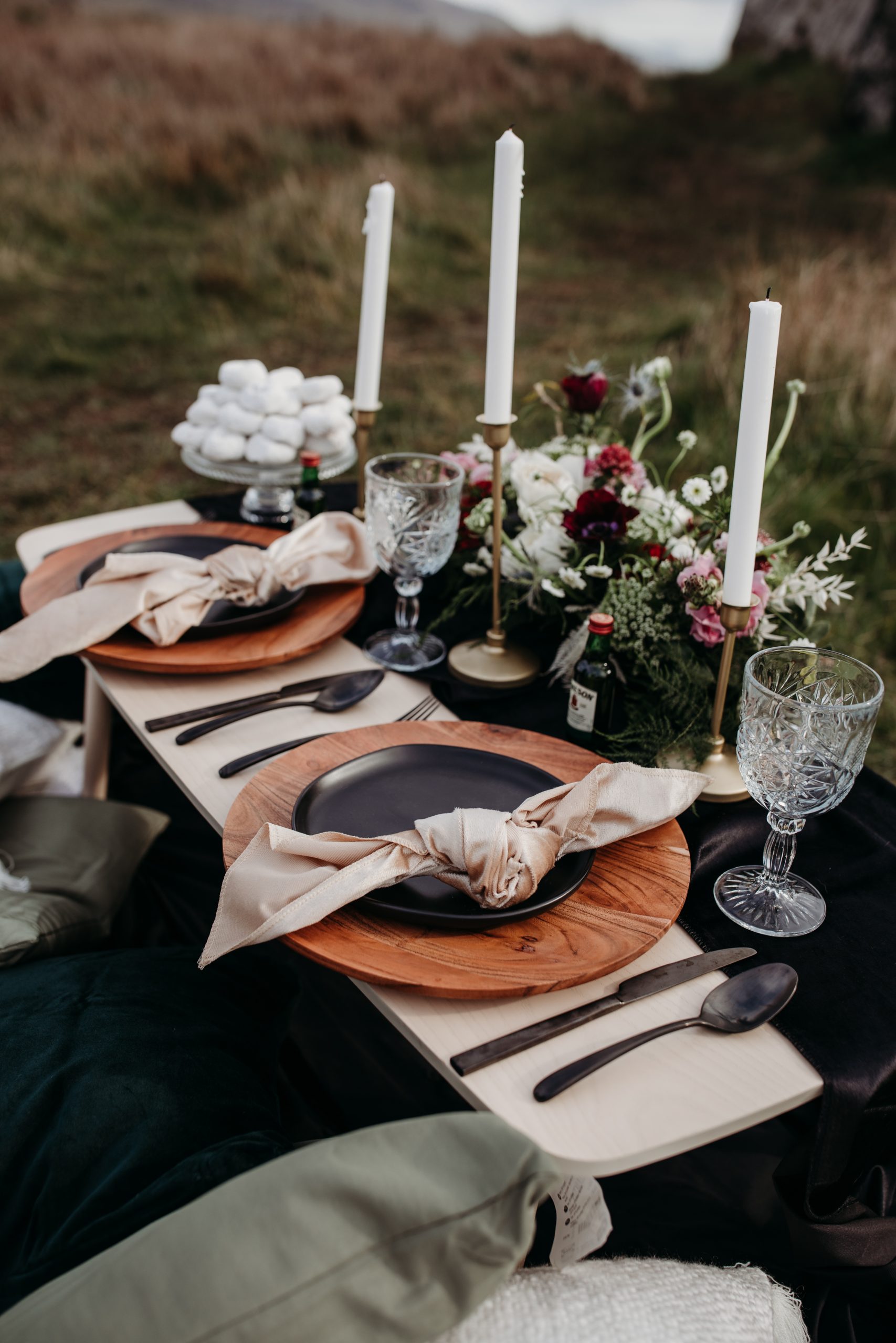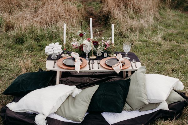 Black table runner that adds as accent decor for table setups.