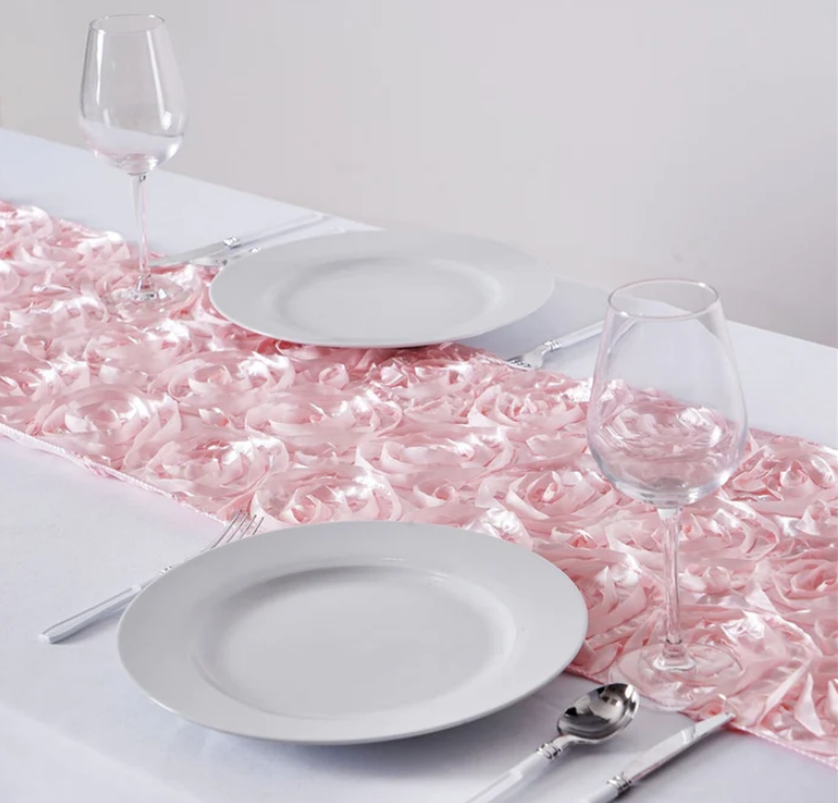 - 3D Rosette Satin Table Runner Blush Pink 14″x 108″ $6.00 ea.