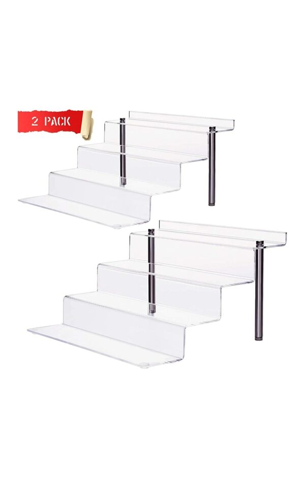 Acrylic Display Stand, Large 4-Step Clear Display Riser Shelf Cupcake Table – 2 Pack(12in x 6.3in)