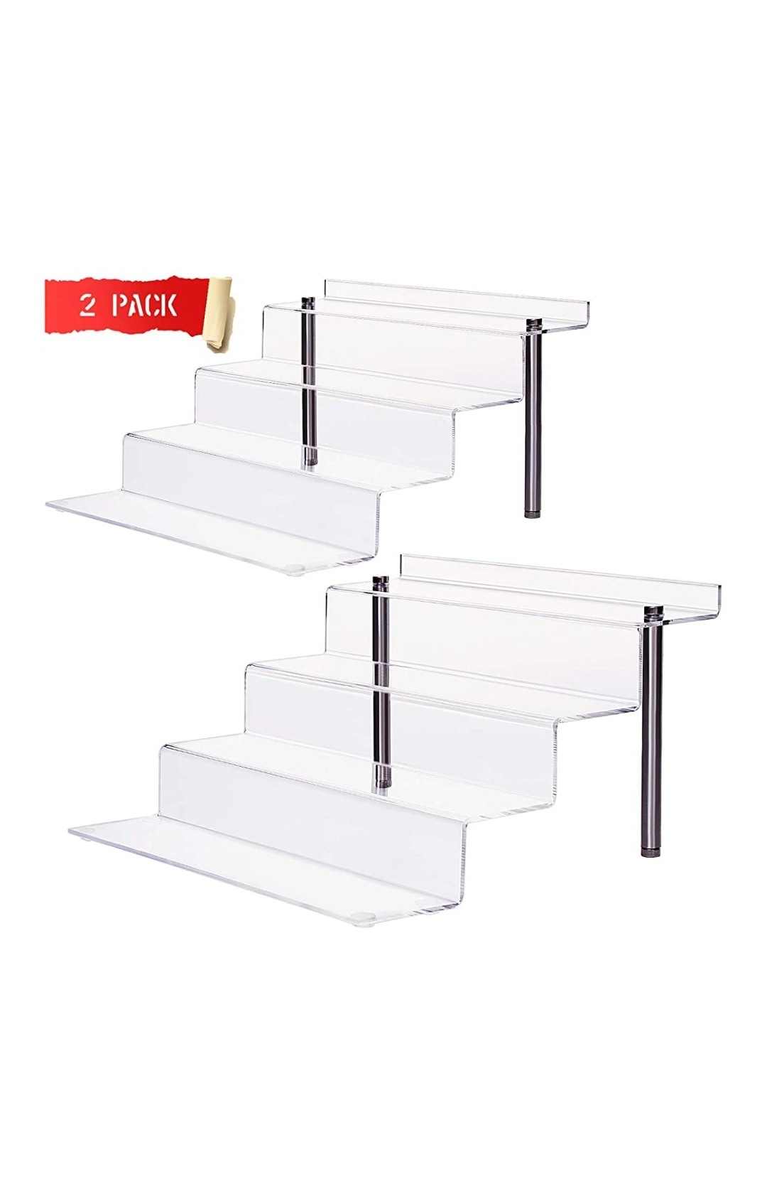 Acrylic Display Stand, Large 4-Step Clear Display Riser Shelf  Cupcake. 2 Pack (12in x 6.3in).