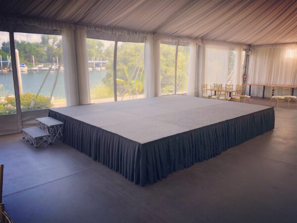 We setup stages for all events & any occasions. Stages can be setup any size from 8ft x 8ft all the way up to 32ft x 32ft.