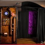 Our vintage (Victorian era) steampunk time machine is one of our favorite photo booths. We have used it for a wide range of events, from a London party for KU Medical Center to the nicest weddings. With the beautiful stained woods, bursts of steam and fun special effects it enchants everyone to come over and give it a try. It is a curtained booth which allows up to a dozen guests to get in and give it a spin. The interior curtain colors can be customized for your event. Give your party that “WOW” moment when your guests see the booth and then can’t wait to use it. For more information: https://thelookingglassphotobooths.com/steampunk-photo-booth/