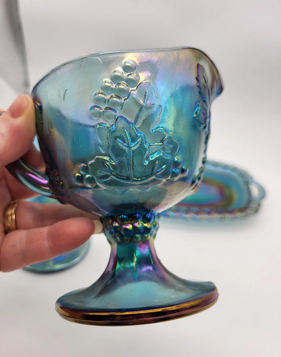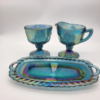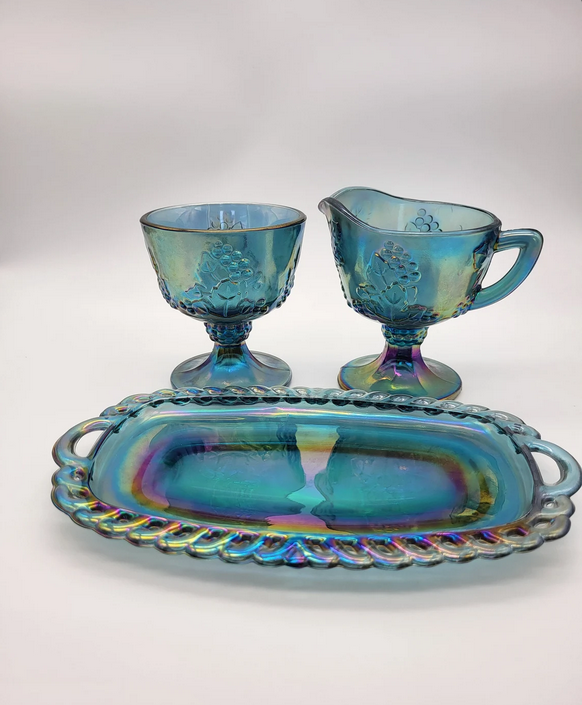 - Harvest Grape Iridescent Glass Blue Creamer & Sugar Bowl Set w/Tray $33.00 ea.