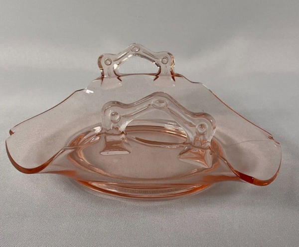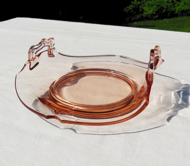 L.E. Smith Mt. Pleasant Pink Depression Rolled Edge Handle Bon Bon Plate $20.00 ea.