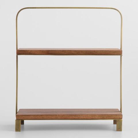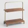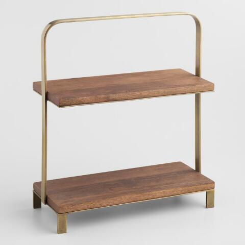 Wood And Antiqued Brass 2 Tier Serving Stand