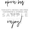 “Open bar. Tonight’s drinks are free. Tomorrow’s stories are priceless. Enjoy!”