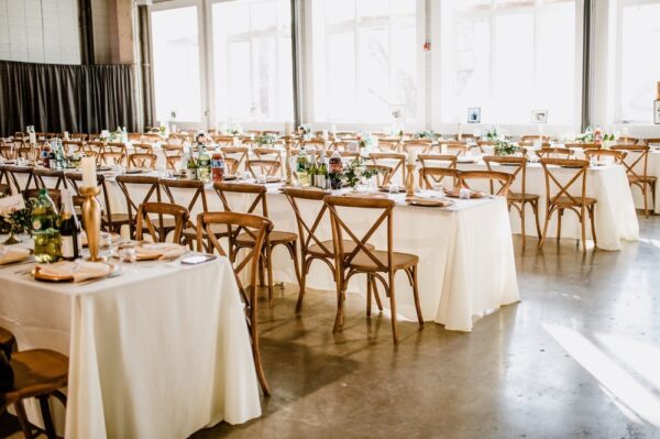 • Recommended Tablecloth Size: 90×156 (we offer those in stock to accommodate our tables)