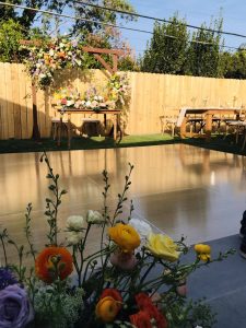 Our light maple wood dance floor comes in 3 ft x 3 ft panels, installed to your desired size. Prices vary by size. $35 per 3′ x 3′ panel.