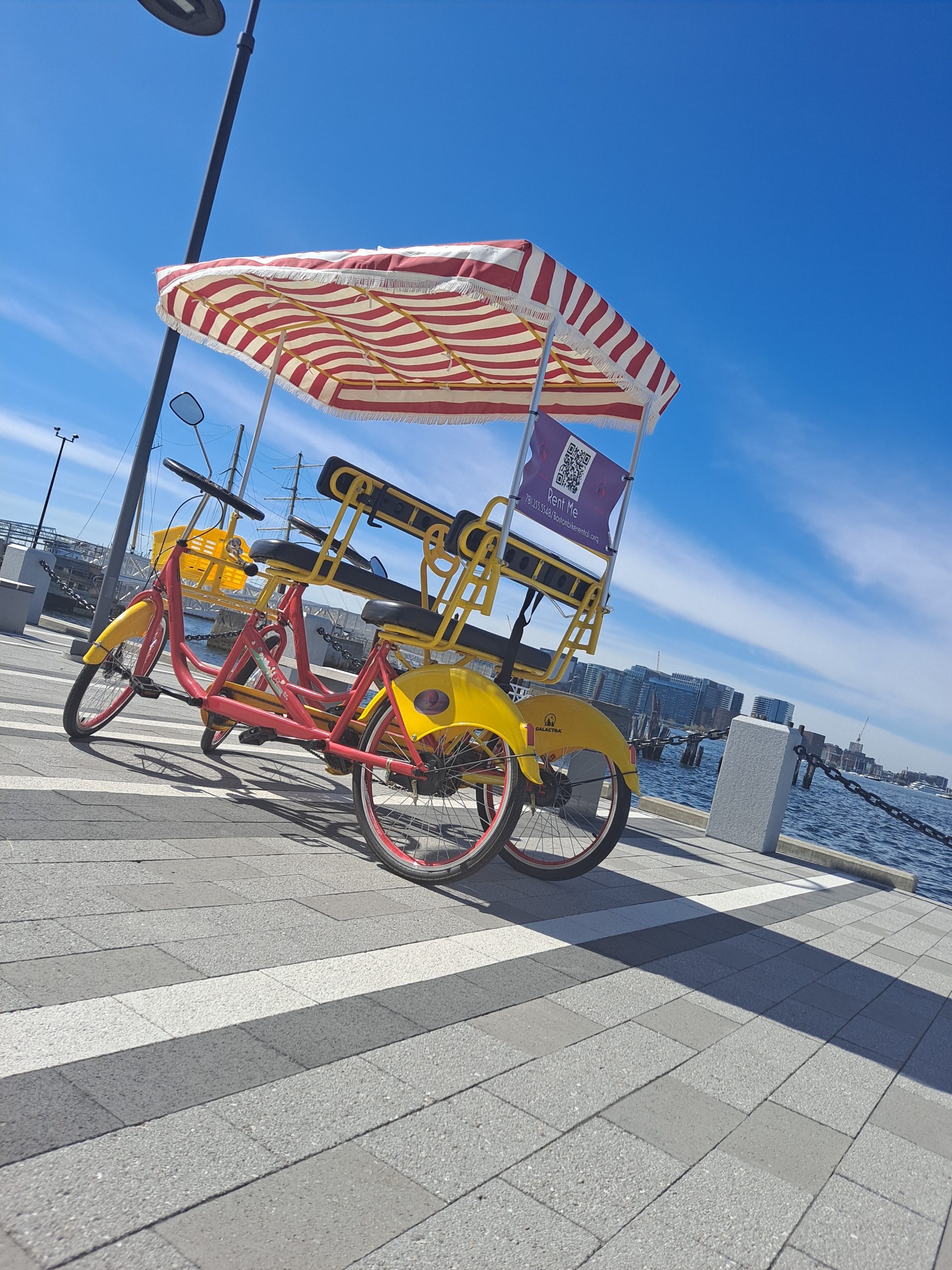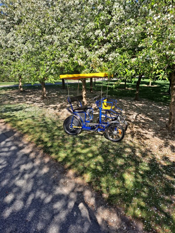 Rent our Surrey Cycles for your next party. This modern-day carriage is the perfect piece to elevate your next event. This package includes use of 5 of our Single Surrey Cycles (fits 2 adults and two children, under the age of 5) for 8 hours plus delivery and pick up within a 5 mile radius of our shop. And fuel.