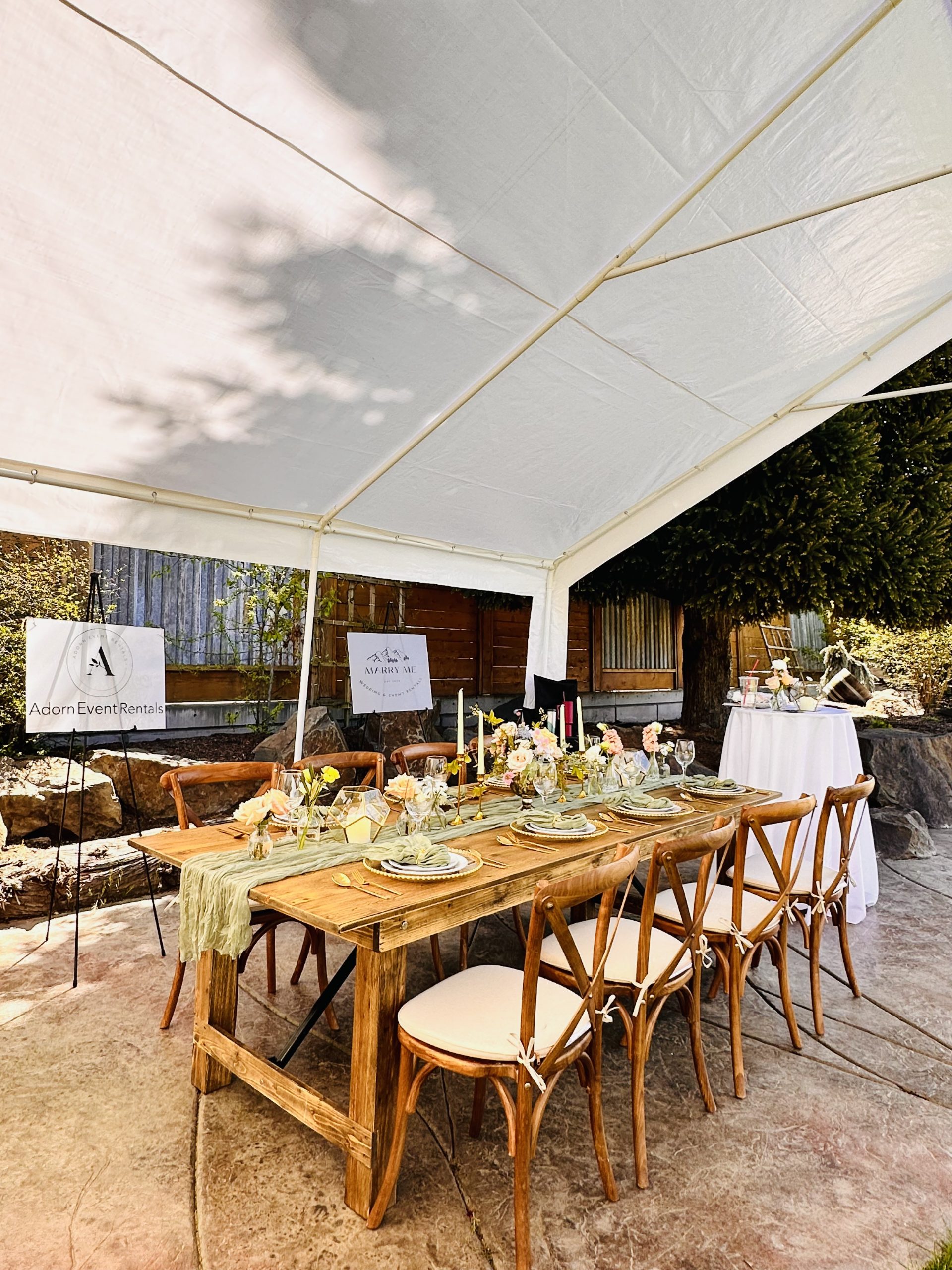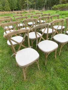 Pair our wooden crossback chairs with our Rustic Farm Tables to complete the set or use this seating option for a rustic formal wedding ceremony.