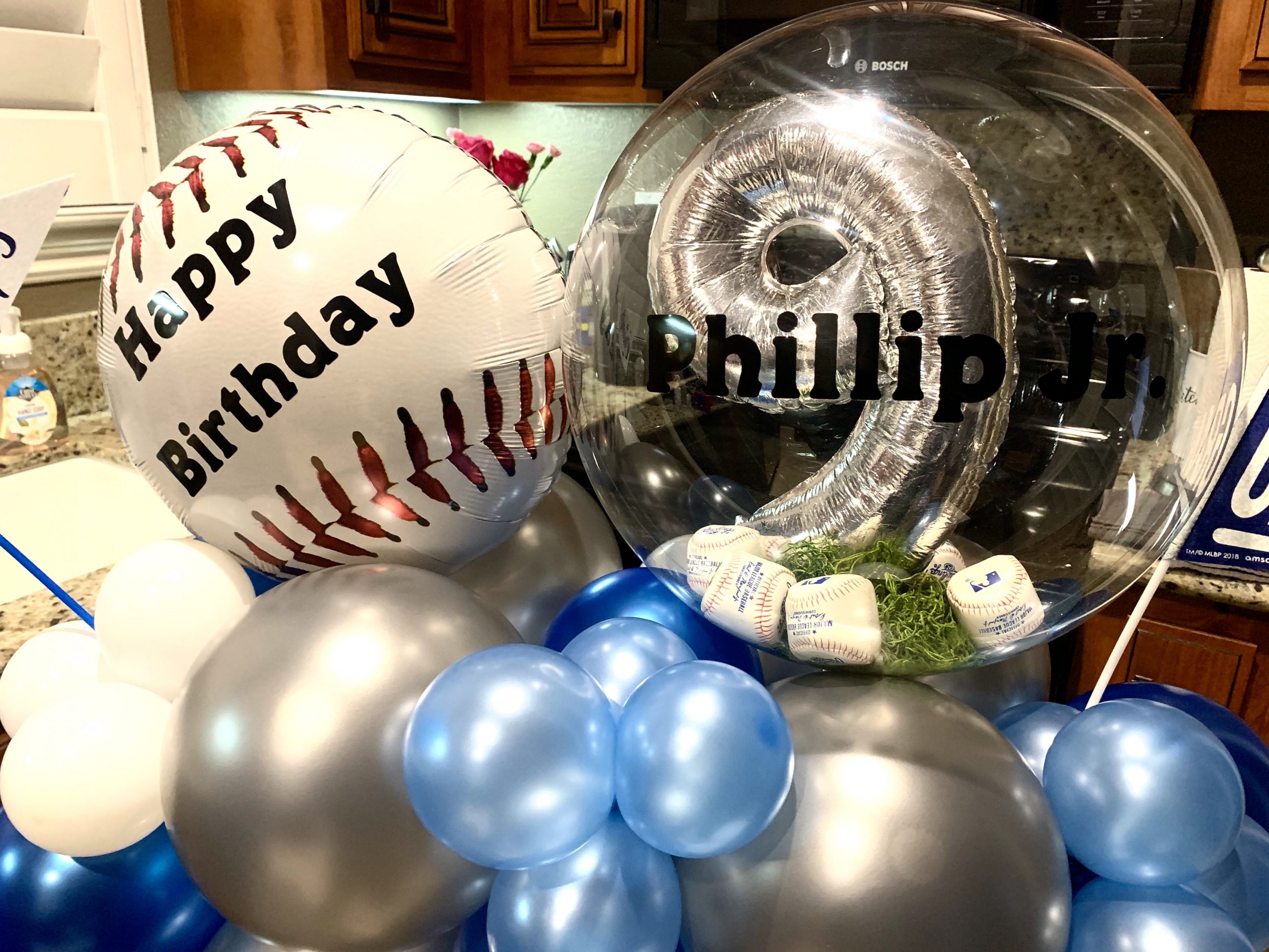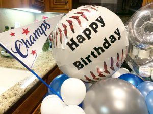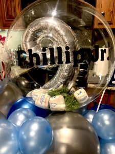 A small balloon bouquet can easily fit on a table top. Specialty details can be added such as custom name and mylar balloons. Final price will be determined by the amount of details desired.