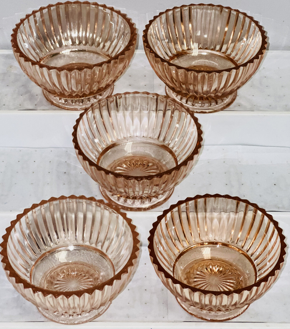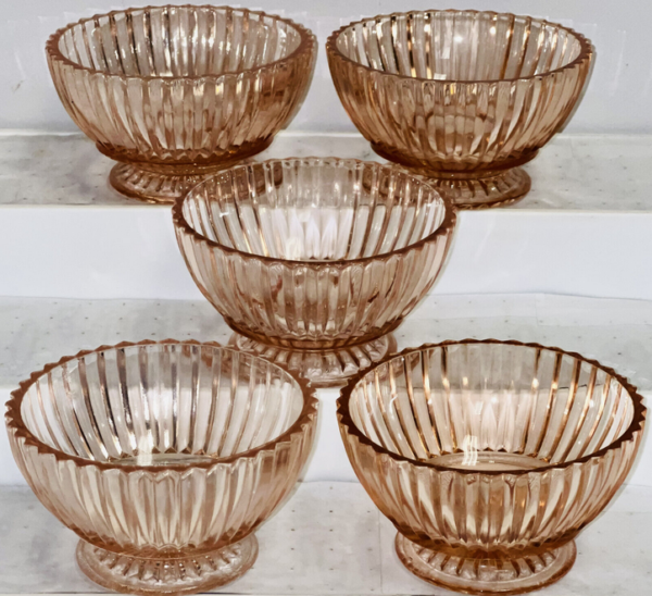 - QUEEN MARY Vertical Ribbed Blush Pink Low Footed Bowl $10.00 ea.