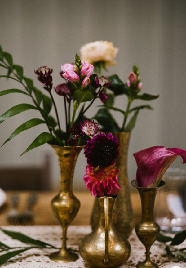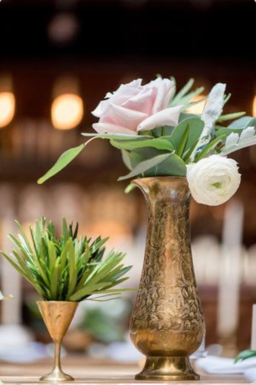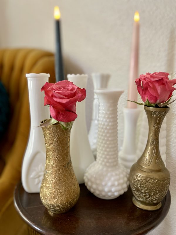 Each piece in our collection of vintage brass vases is unique and varies in size and style.