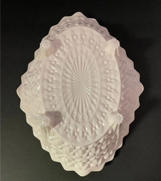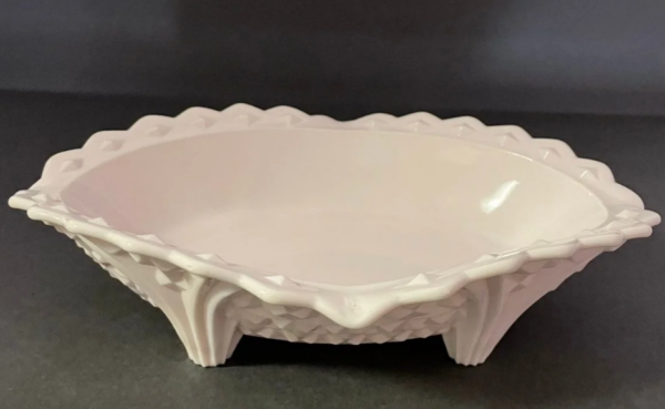 Jeanette Pink Milk Glass Oval Serving Bowl. “Buttons & Bows” pattern $65.00