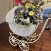 Vintage Baby Prams (Carriages). All are antiques that date from 1911 to the early 1920’s. I have restored, redesigned them all, and they are available for daily rentals. All are different colors, styles, unique, and one of a kind. I have a total of 7 different Prams to choose from.