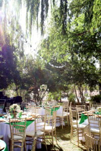 The reception was an absolute dream in itself. We enjoyed the perfect evening surrounded by rich green tones starting from the beautiful linens on the tables to the whispering willow trees above. The setting was absolutely amazing! The willow branches hanging above the reception along with the bistro lights created such a magical and whimsical atmosphere! I just wish I can relive that day!