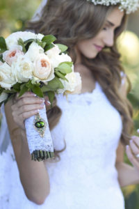 At the time of my wedding, light tones were trending, I however was really inspired by rich colors like emerald green! With much opposition from others, I decided to go with green as my wedding color and I paired it with peach and gold. I personally was very happy with the result! The style I decided to go with was a an ornate vintage look with a lot of lace detail. We also tried to keep a timeliness and classic look.